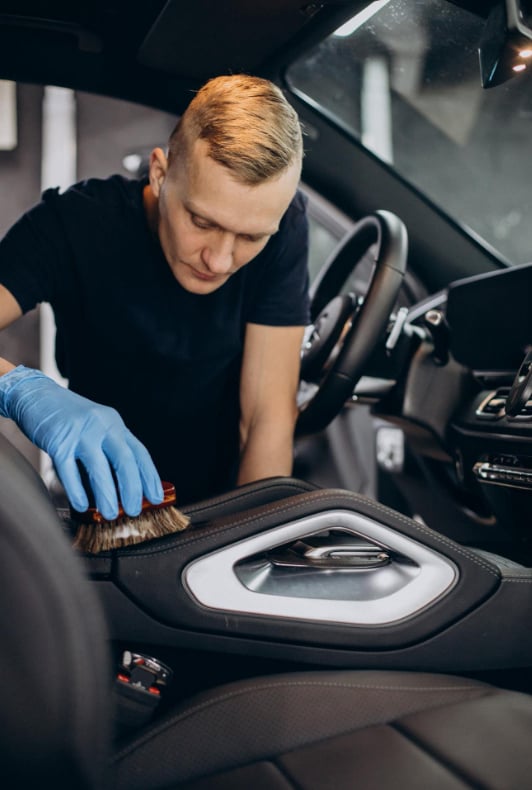 We thoroughly deep clean all interior surfaces to remove dirt and stains. Carpets and upholstery are shampooed and extracted to lift embedded grime. All leather surfaces are gently cleaned and then conditioned to restore their softness and prevent cracking. Hard surfaces, vents, and trim pieces are meticulously cleaned and dressed. The final step is a thorough glass cleaning from the inside for a clear, streak-free view.